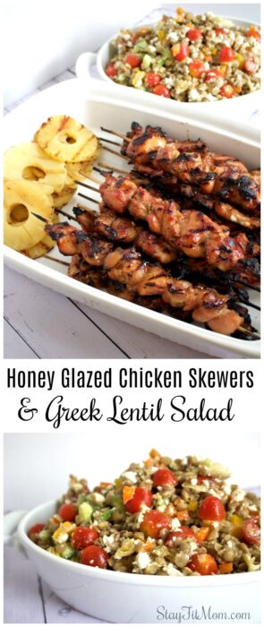 Honey Glazed Chicken Skewers & Greek Lentil Salad